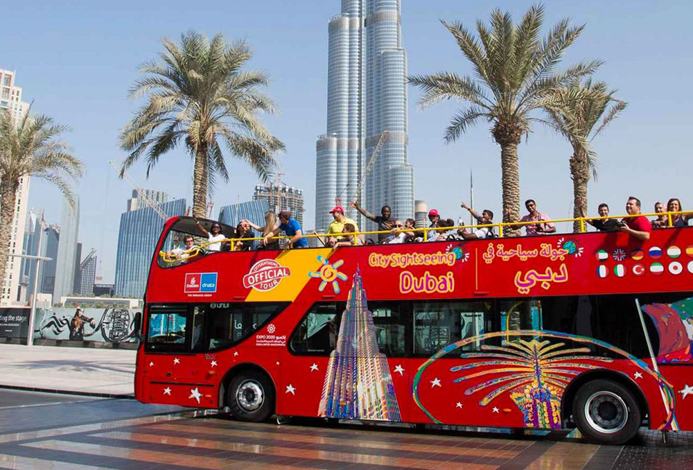 Discover Dubai aboard a traditional open top double-decker bus, the king of all sightseeing vehicles.