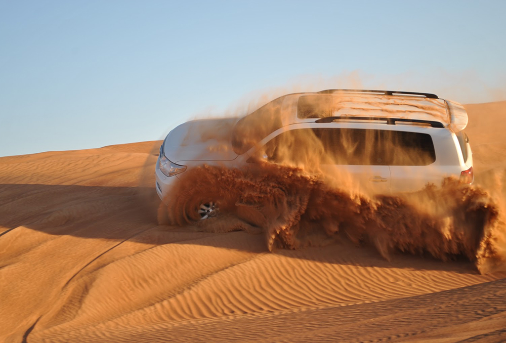 An Abu Dhabi desert safari is a popular tourist activity that involves exploring the vast sand dunes of the Abu Dhabi desert in a four-wheel drive vehicle